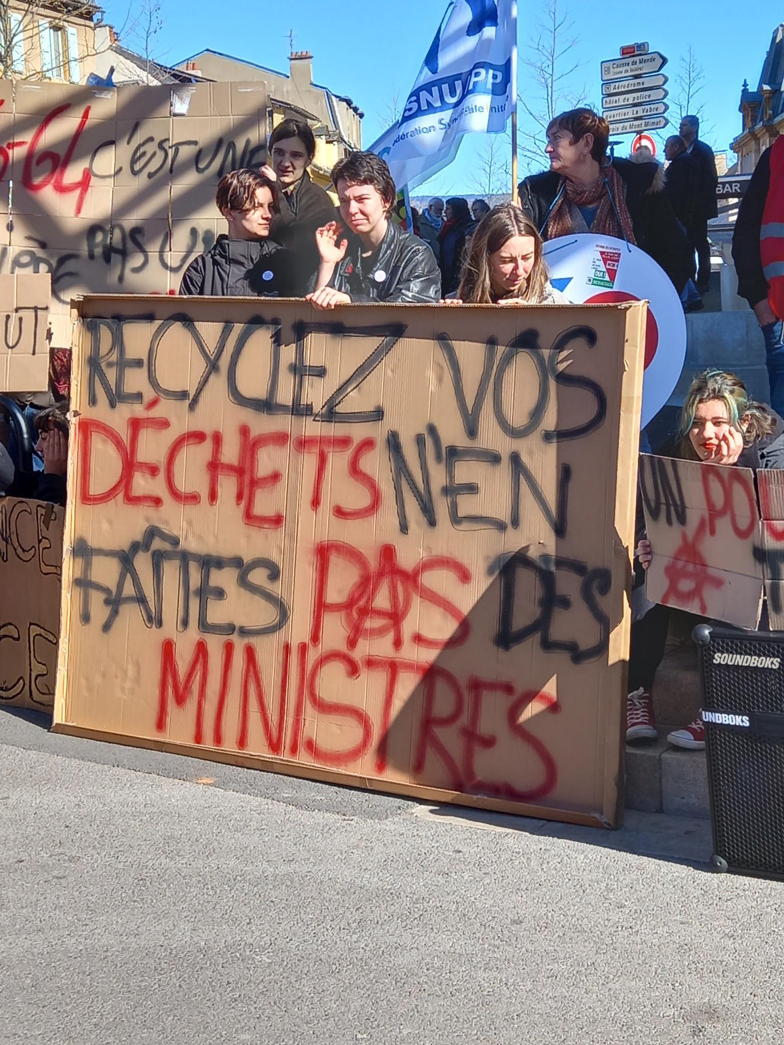 En continuant à mobiliser par la grève et les actions revendicatives comme celles de ce jour, il doit placer les députés et sénateurs devant leurs responsabilités d’élus nationaux. C’est le sens du courrier adressé par l’intersyndicale départementale à Mme la sénatrice et à M le député de la Lozère. Soutenir une réforme refusée par 93 % des actifs serait un déni démocratique de l’ensemble des parlementaires et ils devraient en rendre des comptes.